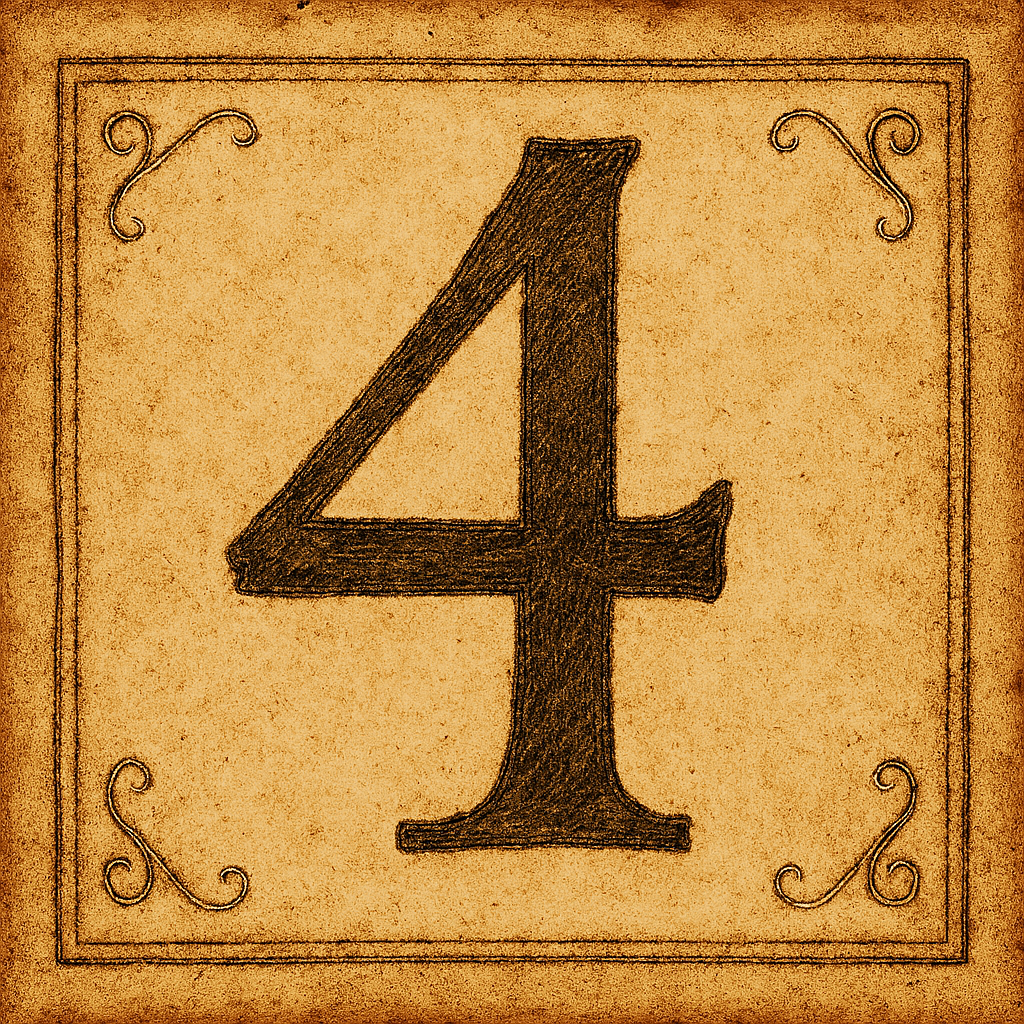 Quatro é o plano manifesto. É a forma sólida. Estabilidade. É a soma das três dimensões espaciais (altura, largura e profundidade) com a dimensão temporal.